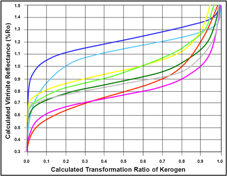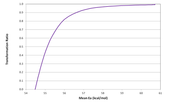 As an alternative or supplement to existing techniques, we recommend the use of the Mean Ea values derived from kerogen kinetic analysis (Waples et al., 2002, 2010). This parameter must be calibrated individually for each kerogen or organofacies, but once calibrated it can provide accurate assessments of Transformation Ratio (TR) from 0 to about 0.95 (that is, from 0% to 95% of hydrocarbons have been generated). Moreover, the TR values derived in this way can be easily correlated with Ro values. We derive the Mean Ea using data obtained from pyrolysis using Rock-Eval, SRA, or Hawk, and extraction of the kinetics using our proprietary ORFA software.