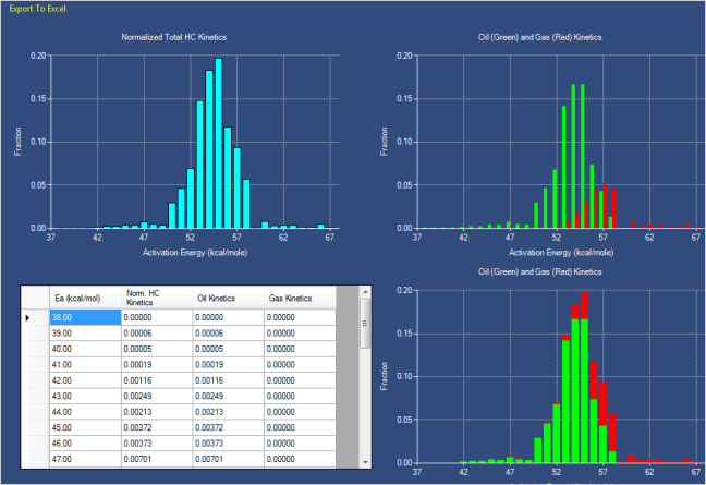 Although most studies today use the same kinetics for oil generation and gas generation, it will soon be routine to calculate oil generation and gas generation separately, using different kinetics. We are prepared for this change, since we can now provide an approximate separation of kinetics for total hydrocarbon generation (the kind of kinetics used by most people) into separate kinetics for oil and gas. This inexpensive calculation will be extremely valuable for those who want to distinguish oil and gas in their exploration evaluations.